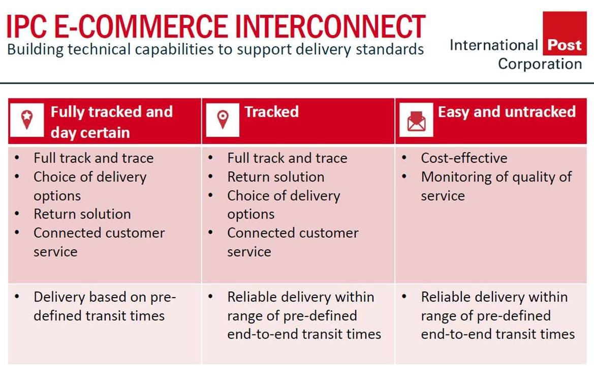 At the same time, the International Post Corporation (IPC) is designing and building cutting-edge technical capabilities and solutions to support the 1st integrated postal and parcel network. The IPC’s eCommerce Interconnect Program (eCIP) builds on existing IPC operational cross-border solutions.